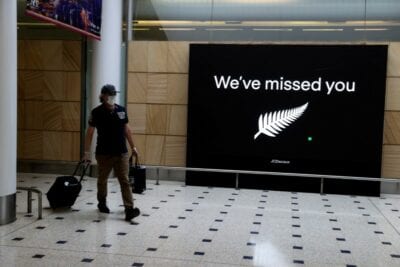 FILE PHOTO: Passengers arrive from New Zealand after the Trans-Tasman travel bubble opened overnight, at Sydney Airport March 16, 2022
